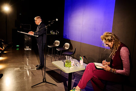 Tanja ter Brake, stadsdichter van Amersfoort, opende en sloot de bijeenkomst op poëtische wijze met het gedicht ‘Ik hoop dat de regenbui voorbij is maar misschien zitten we er middenin’. ​